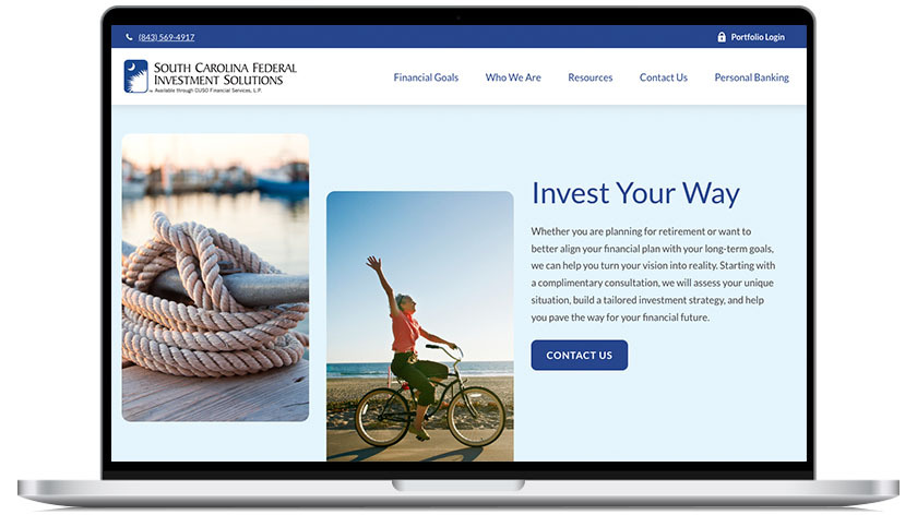South Carolina Federal Investment Solutions’ website is a model of clear and professional design. The homepage allows viewers to quickly identify which services the company can provide to best fit their needs, then easily navigate to schedule a consultation. The site design follows the 5-second rule, making it easy for users to find and understand the information presented at a glance.
